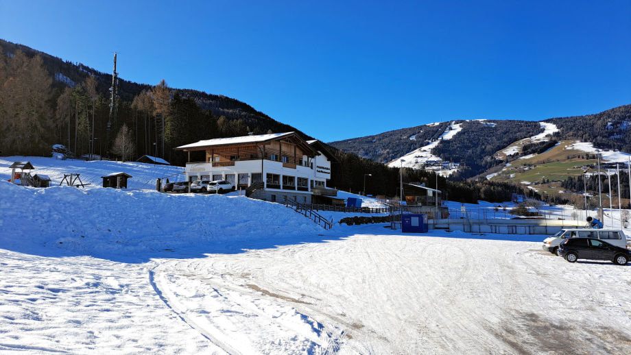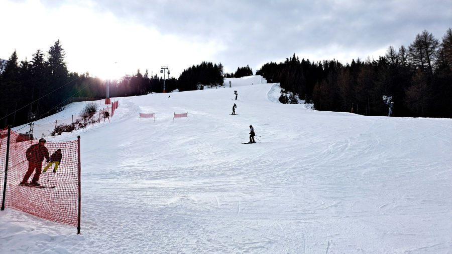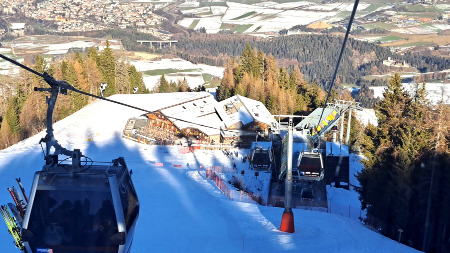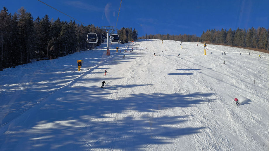 Die Abfahrt von der Kronplatzspitze zur Herzl Alm ist im Dezember ab Mittags im Schatten, aber sehr schön