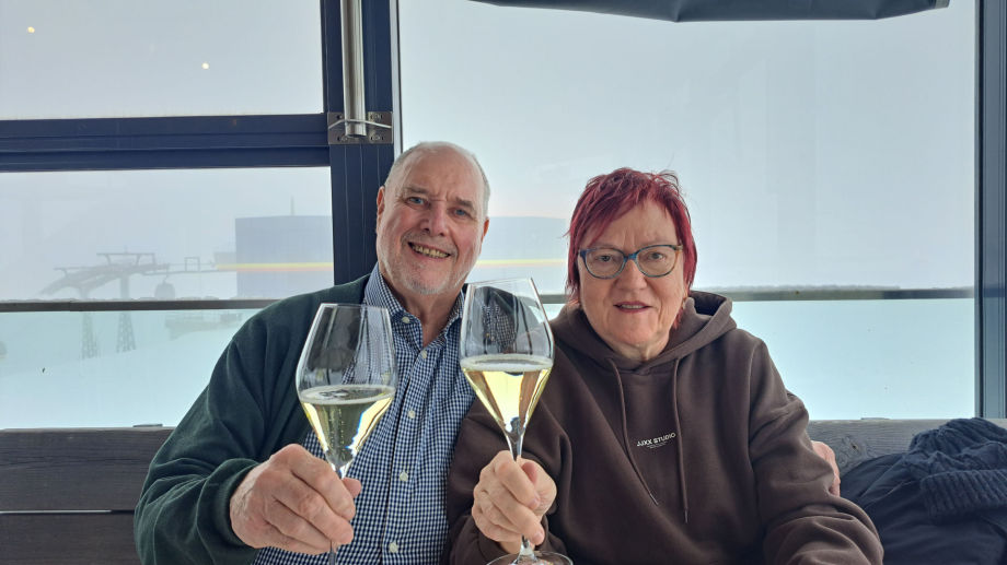 Wir feiern mit unseren lieben Freunden im Spitzenrestaurant Corones mitten im Skigebiet unsere Hochzeitstage